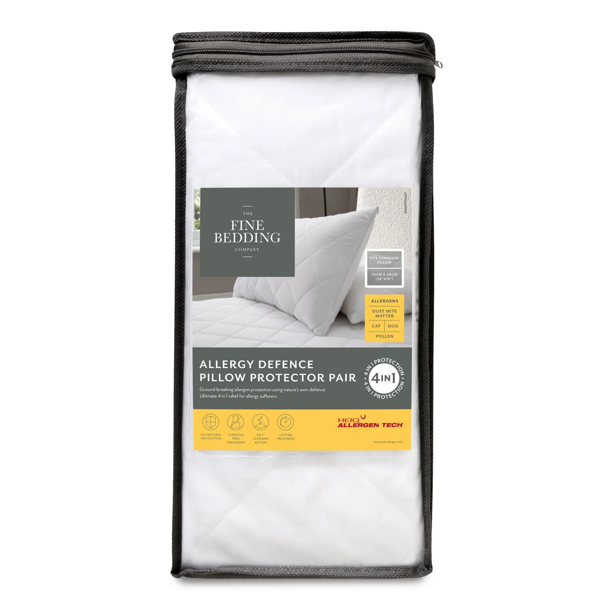 Looking for bedding that offers advanced allergen protection? Look no further than our Allergy Defence Pillow Protector Pair, which provides 4-in-1 relief for allergy sufferers. Developed with market-leading technology, it uses nature's own defence to help you achieve a more restful night's sleep.