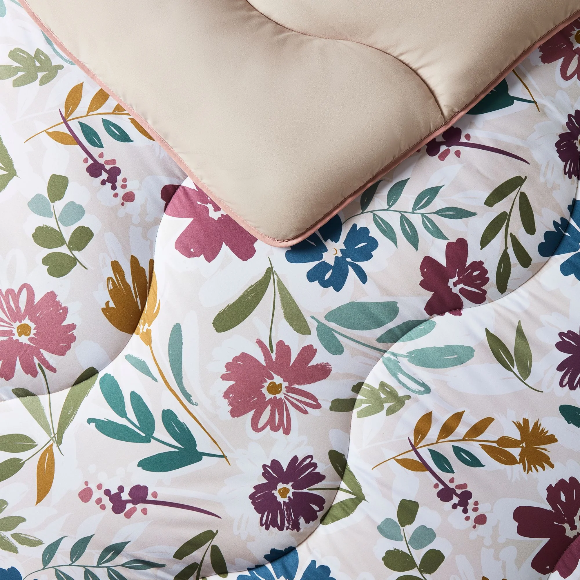 Introducing our iconic Coverless Duvet Set in a fresh floral design. Comes with colour-coordinating pillowcases to complete the look. Bring a pretty, feminine touch to your space, a playful Scandi-inspired print featuring an array of flowers in purples, greens, blues, and mustard yellows. Set on a Polar White and Natural Oat background with a Natural Oat reverse, this light, fun, and effortlessly charming design brightens any bedroom.