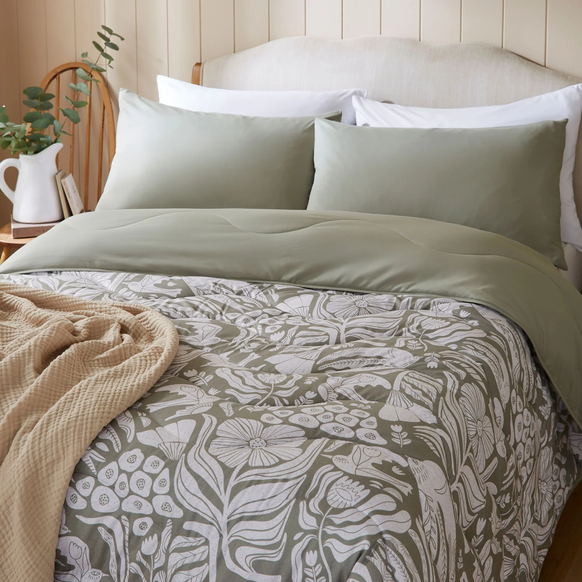 Bring the outdoors in with the charming Scandi-inspired Olive Meadow. With nature-inspired silhouettes in a Matisse-style block print add fun, Danish flair. The print is paired with an Olive Green reverse and Olive Green pillowcase(s).